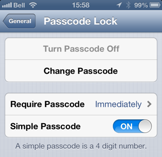 دوم: پس از دانلود ابزار، آن را اجرا کنید تا روند نصب برنامه با دانلود آن آغاز شود. پس از پایان نصب، گوشی خود را با کابل USB به سیستم متصل کنید. اگر از گذرواژه روی گوشی خود استفاده کرده اید، اکنون موقت آن را غیر فعال کنید. برای غیر فعال کردن گذرواژه گوشی در بخش تنظیمات و در قسمتGeneral گزینه Passcode Lock را برگزینید و در صفحه مربوطه روی Turn Passcode Off کلیک کنید: