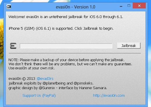 هماکنون evasiOn ابزار Jailbreak برای نسخه iOS 7 را ارائه کرده تا نسخه 7.0.4 را پشتیبانی کند؛ اما همان گونه که گفته شد، نسخه ابزار Jailbreak باید با نسخه iOS همخوانی داشته باشد. در اینجا ما از نسخه آخر ابزار برای iOS 7 استفاده میکنیم.